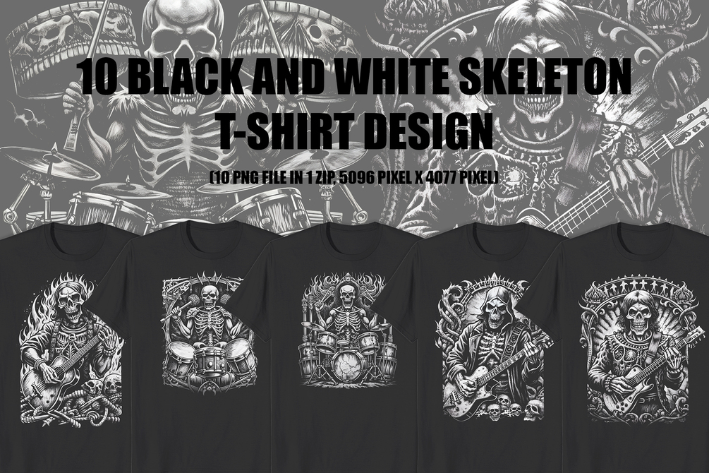10 BLACK AND WHITE SKELETON TSHIRT DESIGN